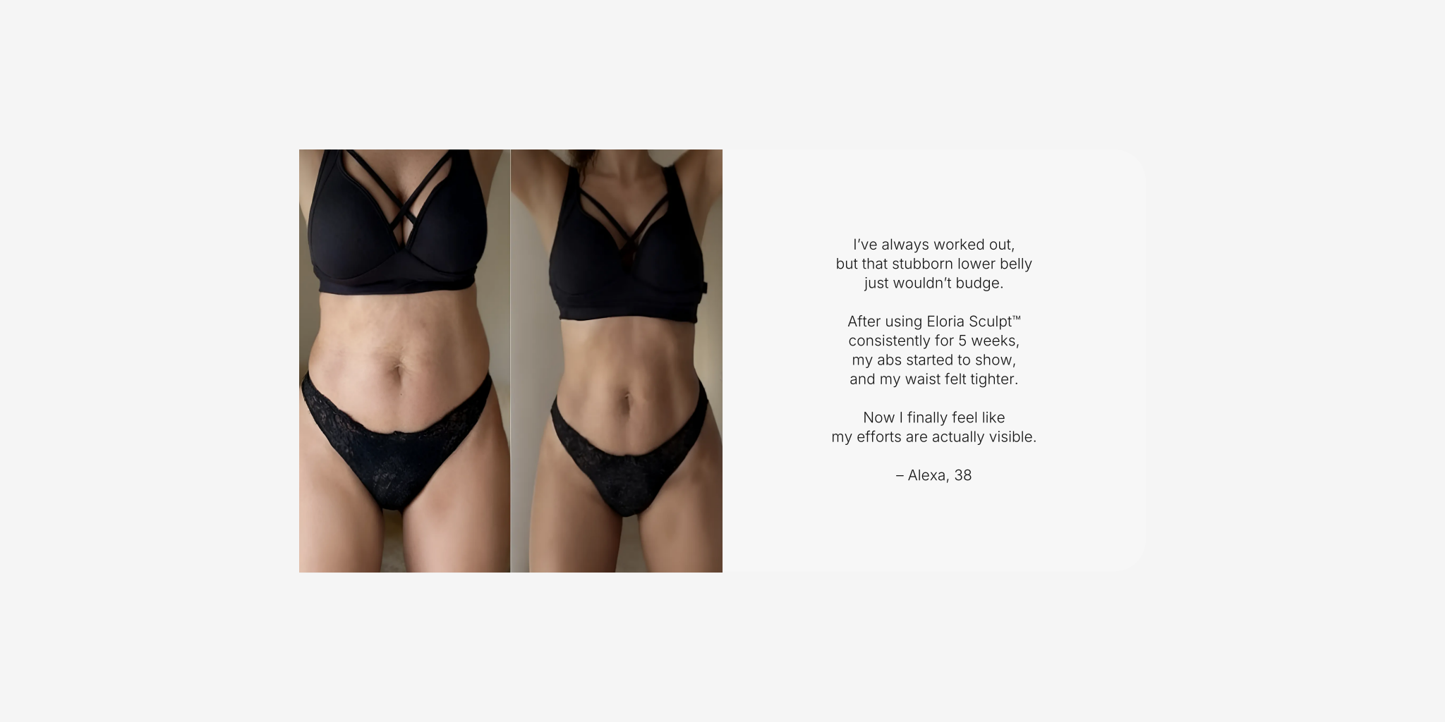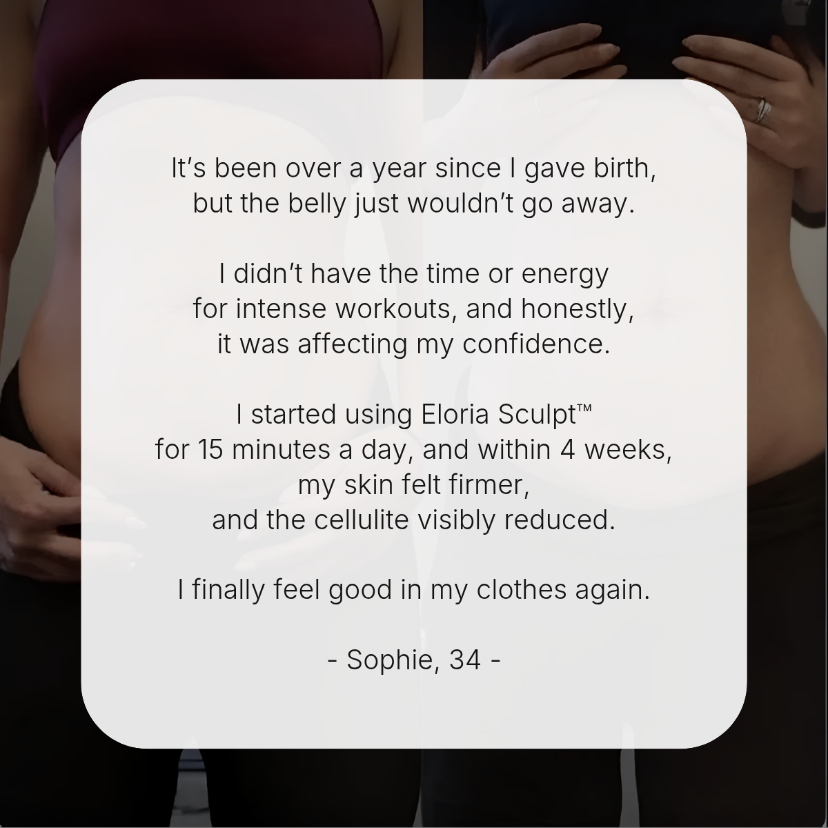 Try Eloria Sculpt™ at home, follow the simple 10-minute routine, and if you don't feel a visible difference in how your skin looks and how you feel about your body, simply send it back. No awkward questions. No fine print. Just a full refund.